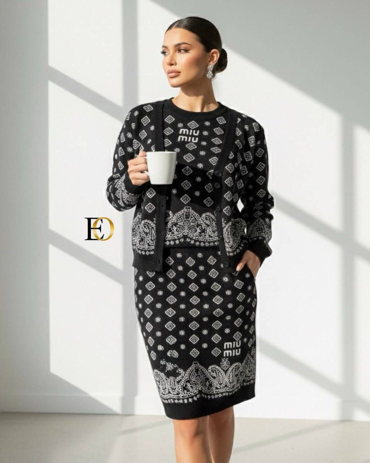 • Kumaş: Triko Kumaş 3 Parça Set • Bedenler: STANDART (SERBEST) Siyah etnik desenli triko takım uzun kollu ve yuvarlak yakalıdır. Rahat kesimi ve mini boyu ile günlük kullanıma uygundur.