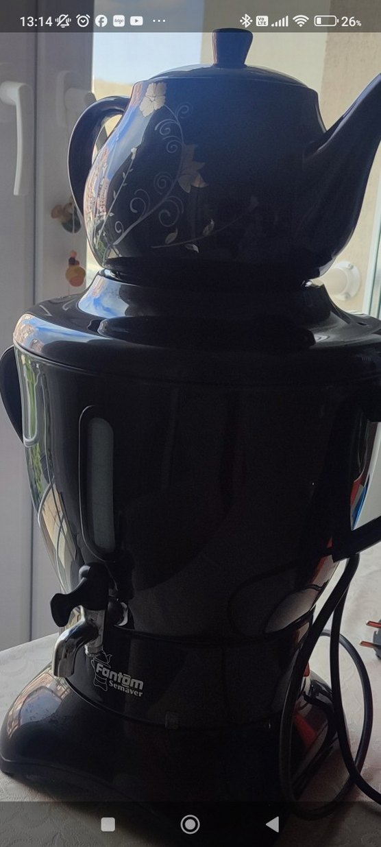Parlak siyah renkte Fantom marka çay makinesi, kolay dökme için musluk ve su seviyesi göstergesi bulunur. çok az kullanıldı ,çok şık ,yerim olmadığı için satmak zorundayimmm