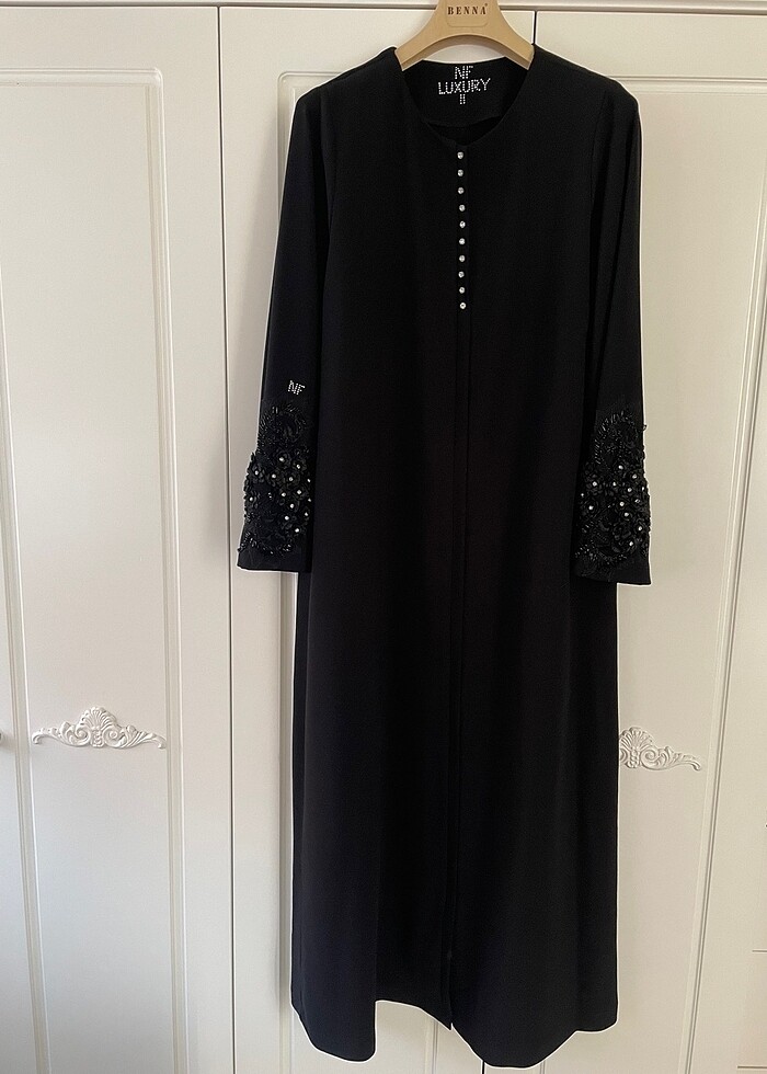 1 kez düğünde giyildi hiçbir defosu yoktur. 2 beden 42-44 uyumludur. Kolları işlemelidir. Boyu 133 kol altı çevresi 110 cm #ferace #abaya #siyahferace
