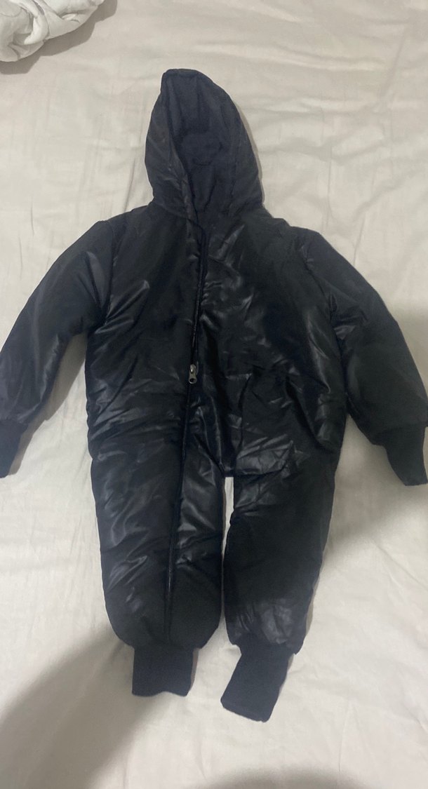 Siyah renkli bebek kayak tulumu, fermuarlı ve yumuşak, sıcak kumaştan üretilmiştir. Kapüşonlu ve desensiz sade tasarıma sahiptir. ❄️