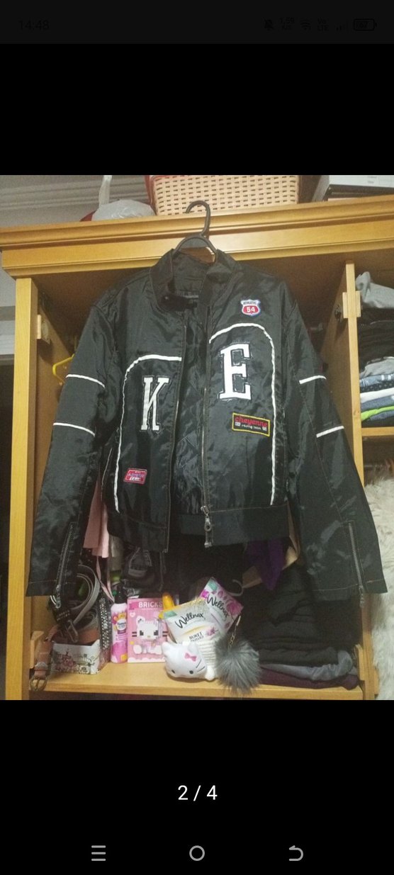 Siyah biker ceket, fermuarlı detaylı, midi boy ve fitted kesimlidir. Uzun kollu ve baskılıdır. Sentetik kumaştan üretilmiştir, günlük kullanıma uygundur.