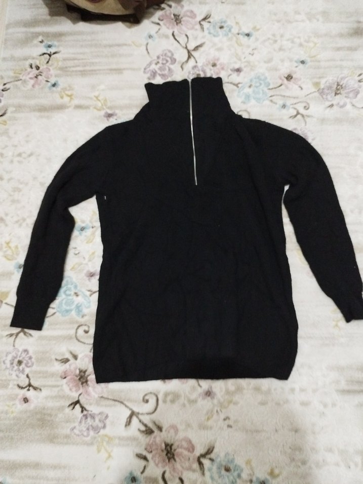 Siyah Fermuarlı Boğazlı Kadın Kazak