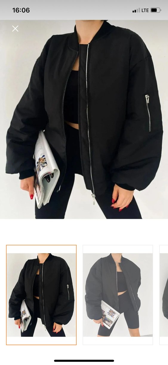 Siyah, fermuarlı, uzun kollu ve bol kesim midi boy bomber ceket. L beden.