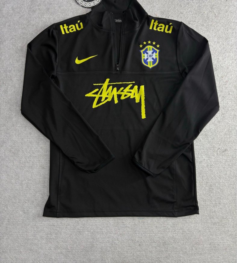Siyah, fermuarlı, yüksek yakalı ve baskılı detaylara sahip uzun kollu spor sweatshirt. Sentetik kumaştan, rahat kesim ve athleisure tarzında. ⚽ S-M-L-XL-XXL BEDENLERİ MEVCUTTUR