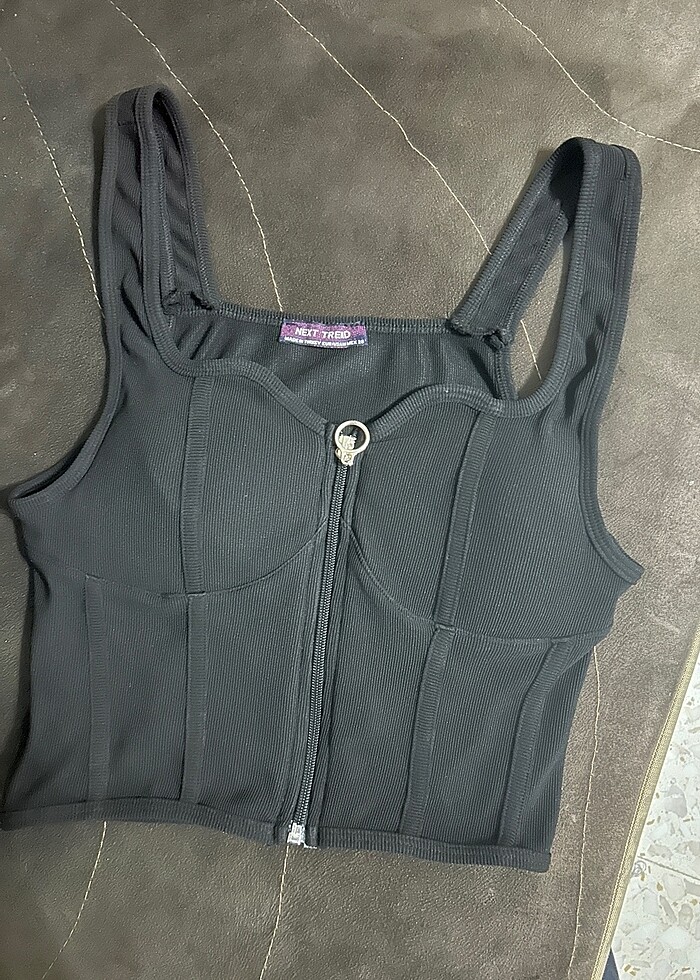 Siyah fermuarlı büstiyer