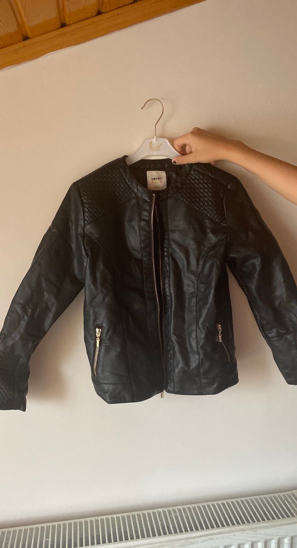 Siyah deri, fermuarlı cepler ve kesimli uzun kollarıyla trend sokak stiline uygun biker ceket.