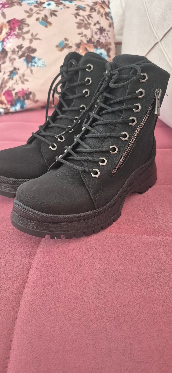 cok az giyildi cok kaliteli.Siyah, fermuarlı ve bağcıklı dolgu topuklu bot. Kauçuk tabanlı, desensiz ve gündelik kullanım için uygun goth tarzında.