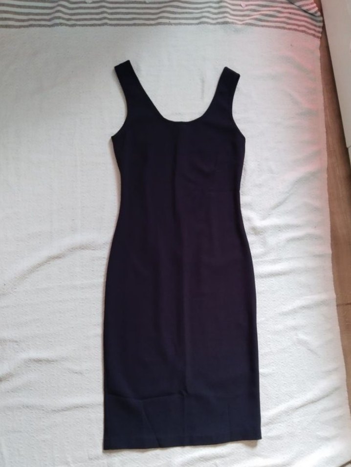 Siyah fermuarlı askılı elbise. Etiketini rahatsız ettiği için kesmiştim o yüzden marka ve bedeninden emin değilim ama S/M olur diye düşünüyorum.