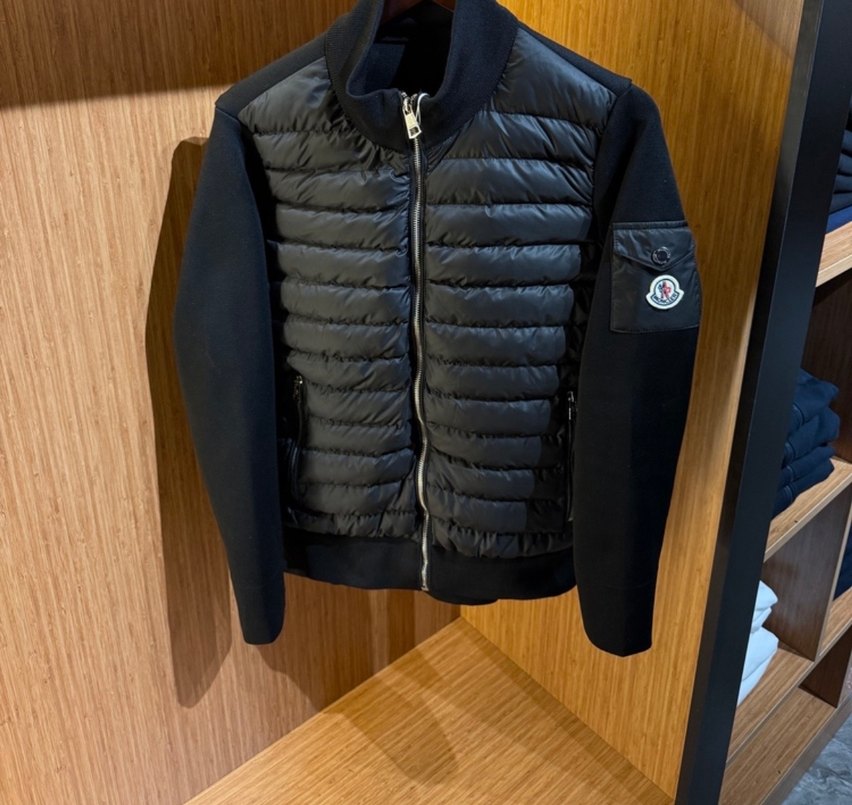 Fermuarlı, uzun kollu ve bisiklet yaka siyah ceket. Yumuşak ve sıcak kumaş ile dolgulu ön paneli, şehir stili için uygundur.