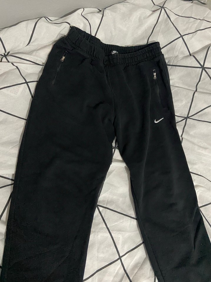 Siyah, bol kesim, fermuarlı cepleri olan erkek çocuk eşofman altı, yumuşak ve sıcak kumaştan üretilmiştir.