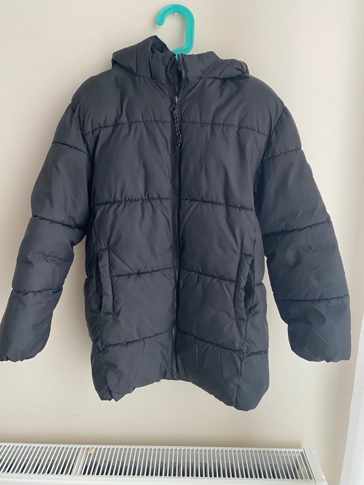 Siyah renkte, fermuarlı ve kesimli erkek çocuk montu. Yumuşak ve sıcak kumaştan, sade ve desensiz tasarıma sahip.