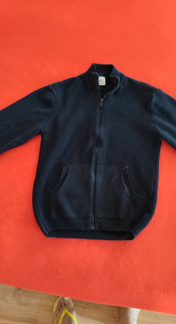 Siyah, fermuarlı ve uzun kollu erkek çocuk sweatshirtü, yuvarlak yaka ve ön ceplerle. Yumuşak, sıcak kumaştan üretilmiş, rahat kullanıma uygun.