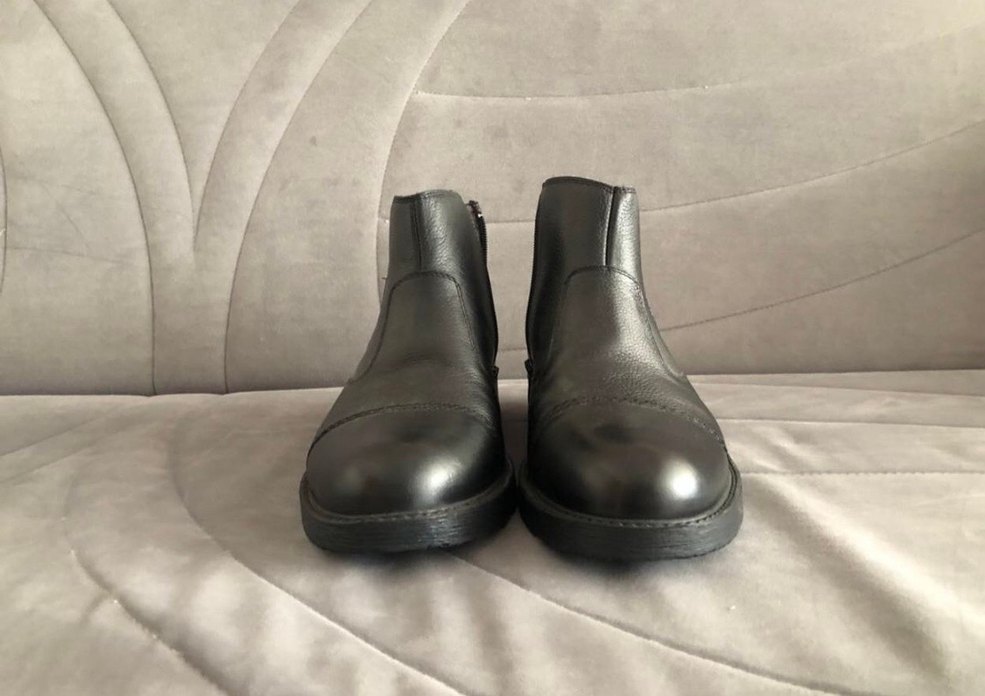 Siyah renkli, fermuarlı erkek deri botlar, hiç giyilmemiştir sıfır minimalist ve gotik tarzı ofis kullanımı için uygundur