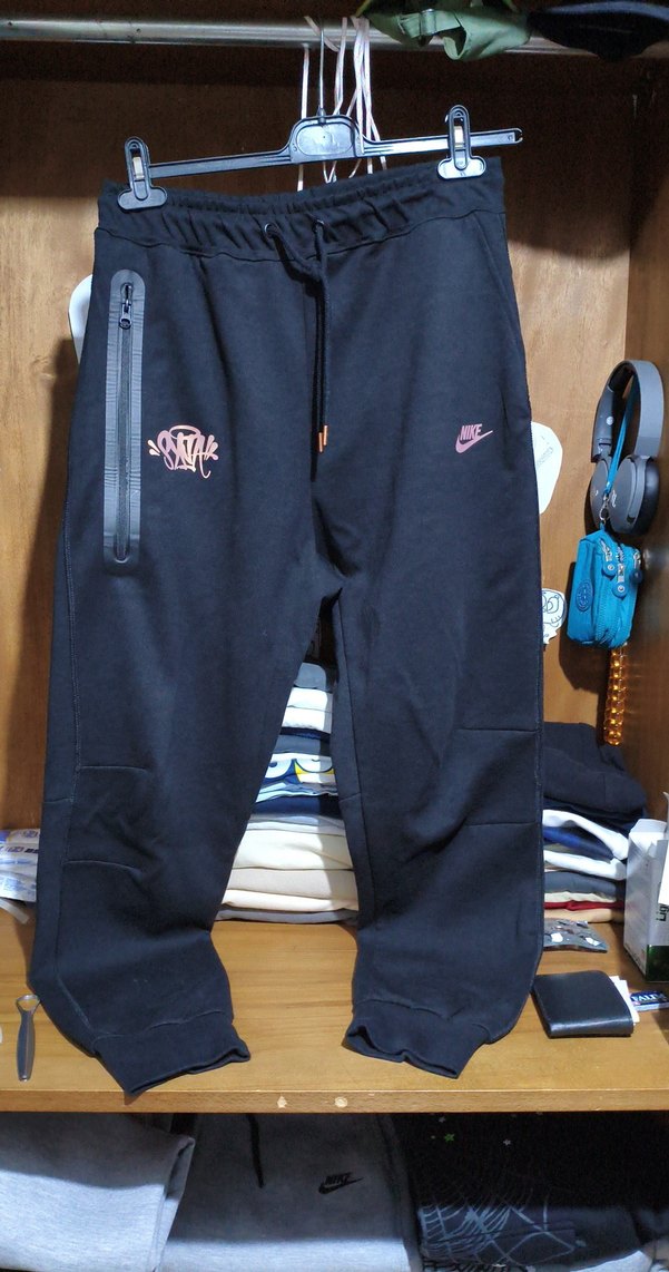 Yumuşak kumaştan, fermuarlı cepli ve baskılı detaylı siyah, bol kesim erkek eşofman altı, günlük kullanım için uygundur.