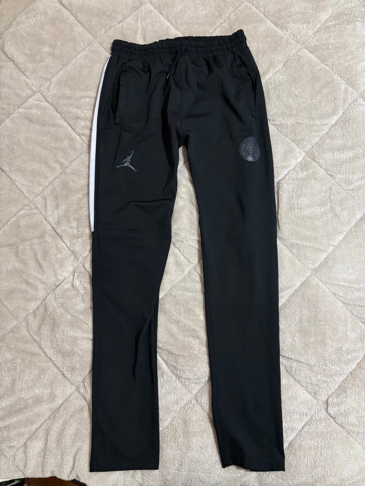 Siyah renkli, fermuarlı ceplere sahip, sentetik kumaştan üretilmiş, normal boy ve regular fit erkek eşofman altı.