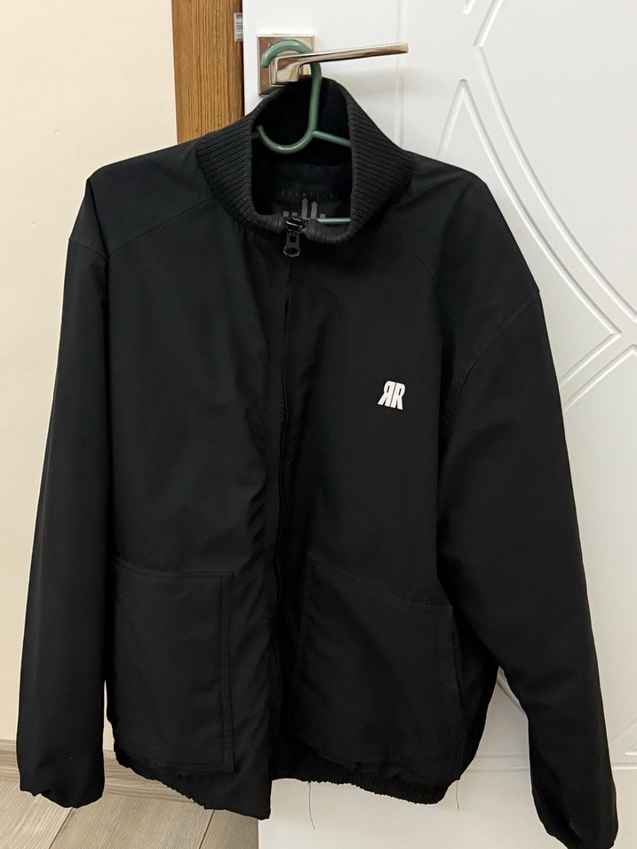 Siyah renkte, yüksek yakalı ve uzun kollu erkek ceketi. Yumuşak fleece kumaştan, bol kesimli ve fermuarlı, günlük kullanıma uygun. Az kullanılmıştır