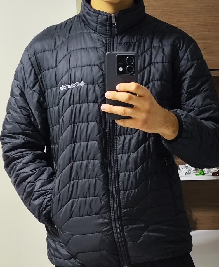 Columbia (Replika) Siyah, fermuarlı, uzun kollu ve kruvaze yaka, hafif ve sıcak kumaştan yapılmış, günlük kullanım için uygun, normal boyda erkek mont. İyi kullanılmış XXL