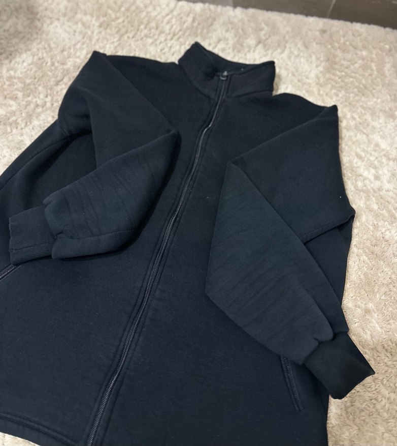 Siyah renkli erkek polar sweatshirt, yüksek yakalı ve tam fermuarlı. Uzun kollu ve bol kesim, rahat ve konforlu bir kullanım sunar. Düz tasarımı ile sokak stiline uygundur.