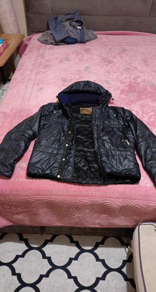 Siyah, fermuarlı ve çıt-çıt'lı. ufak tefek yıpranmalar var.