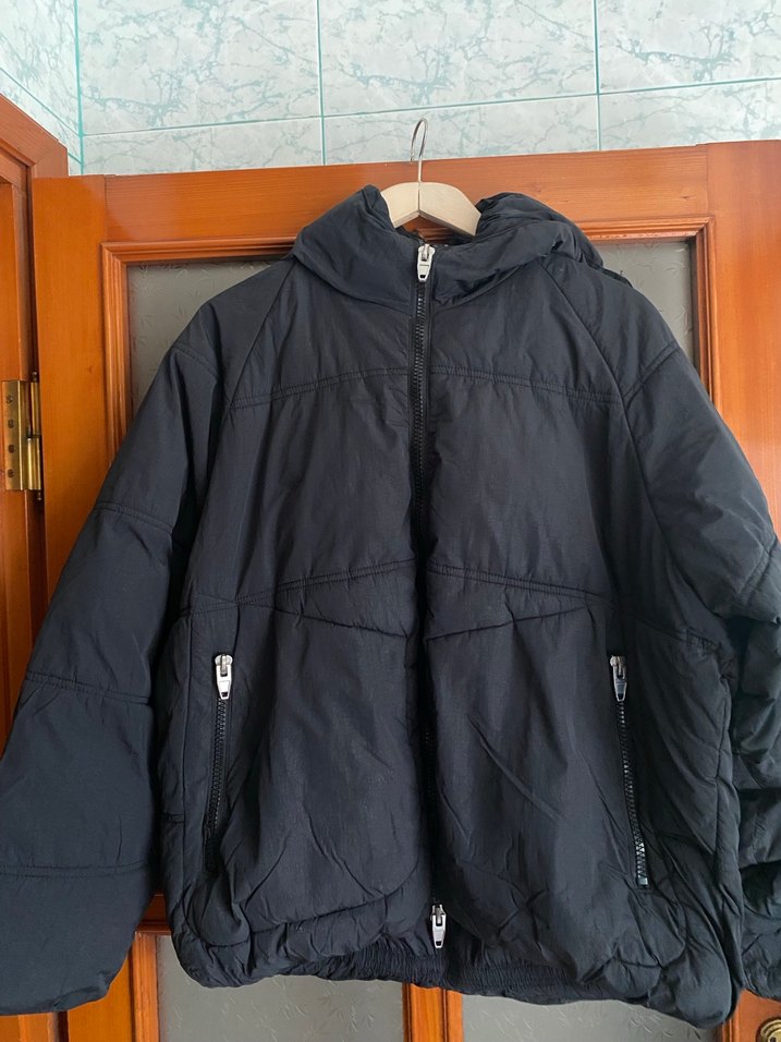 Orjinal zara siyah fermuarlı erkek kışlık mont, kapşonlu
