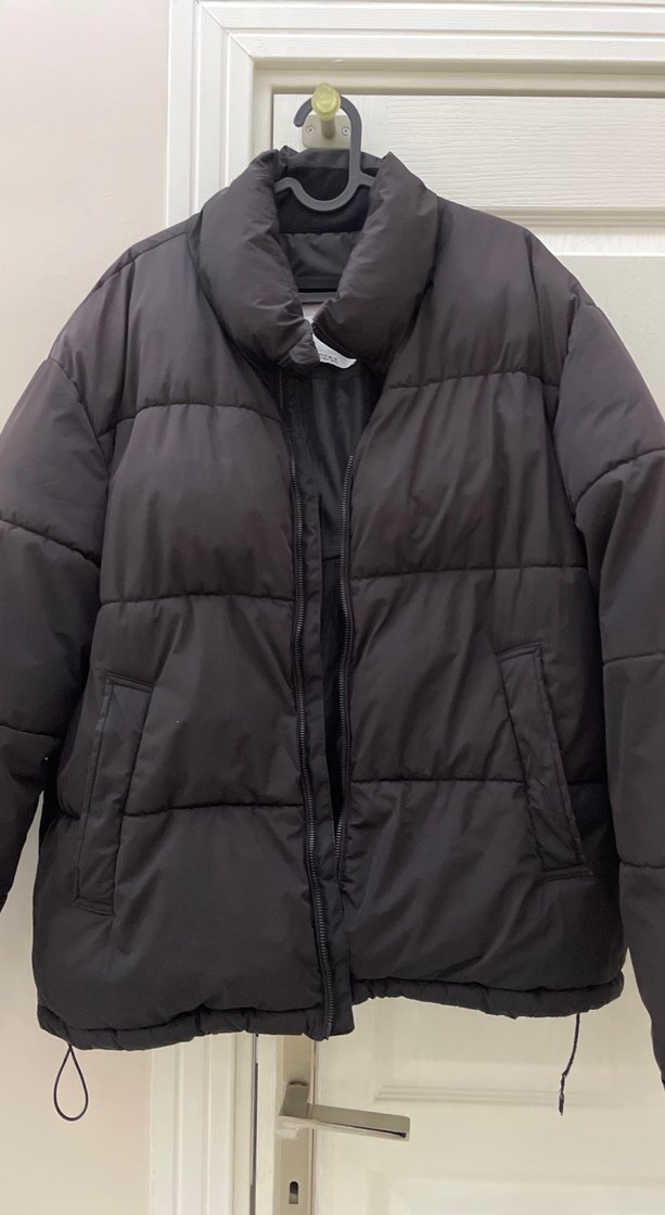 Siyah, fermuarlı erkek kışlık mont, yüksek yakalı ve uzun kolludur. Orta boyda, rahat ve sıcak tutan kumaştan yapılmıştır. ❄️