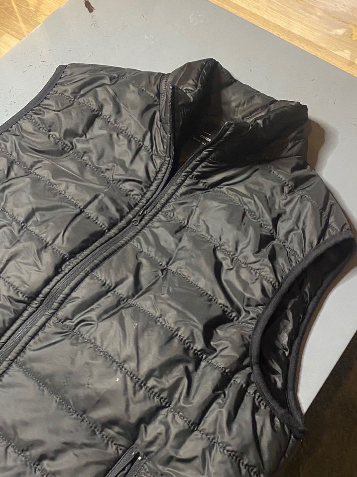 Siyah renkte, fermuarlı ve yüksek yakalı kolsuz erkek yelek. Sentetik kumaştan, atletik ve sokak stiline uygun dar kesim.