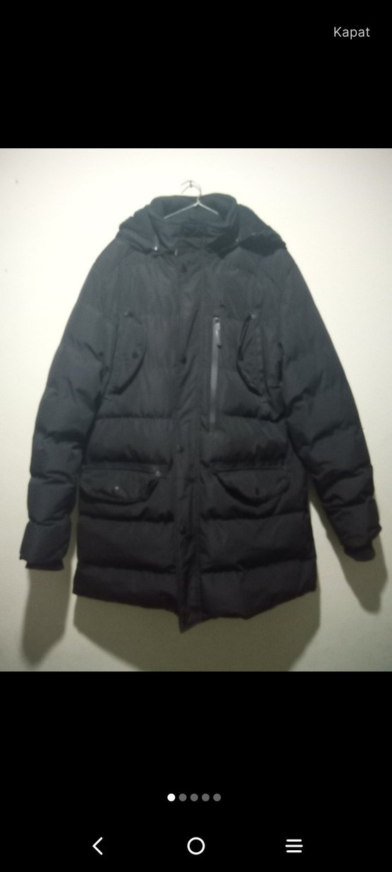 Siyah renkli, fermuarlı cep detaylı erkek midi mont. Uzun kollu, kesimi vücuda oturan ve dış mekan kullanımı için uygun yumuşak ve sıcak kumaştan yapılmıştır.