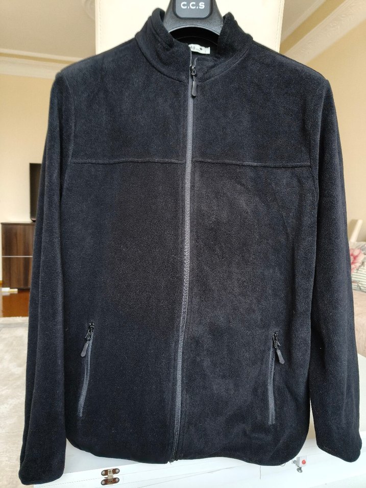 Siyah renkli erkek polar sweatshirt, fermuarlı, uzun kollu ve bisiklet yaka. Rahat kesimli, iki fermuarlı cepli, yumuşak ve sıcak kumaştan üretilmiştir.
