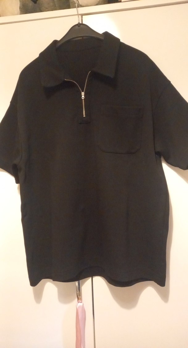 Erkekler için kısa kollu, fermuarlı yakalı siyah polo tişört. Bol kesim,salaş Yumuşak ve sıcak kumaştan, rahat kesim ve normal boyda, günlük kullanıma uygun sade tasarım.