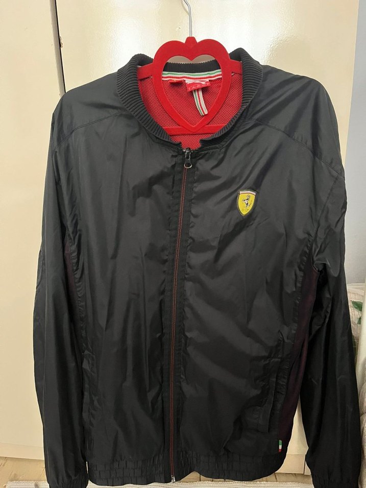 Siyah erkek mont, fermuarlı ve dar kesimdir. Uzun kollu, yumuşak sentetik kumaştan. Günlük spor tarz için uygundur. sadece arkasındaki yazılar biraz çıktı