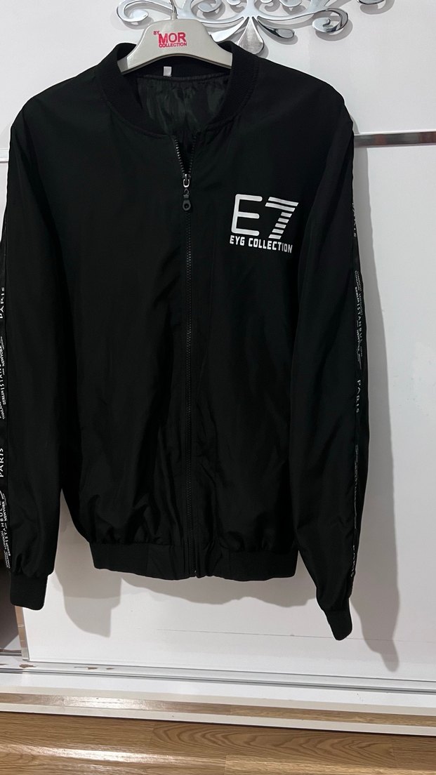Dar kesim siyah fermuarlı erkek ceketi, sentetik kumaştan ve bisiklet yaka. Göğüs ve kollarda ET EYG COLLECTION baskısı bulunur. Temizliği yapıldı iade yoktur XL bedendir