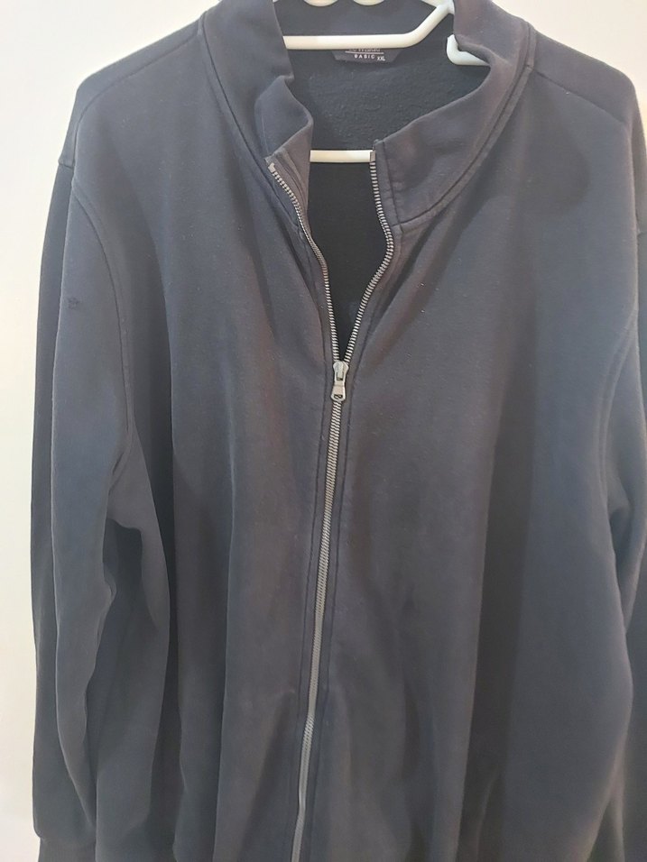 siyah renk, fermuarlı, yüksek yakalı ve uzun kollu erkek sweatshirtü. Rahat kesimli ve yumuşak, sıcak kumaştan üretilmiştir. kolunda minik bir delik var