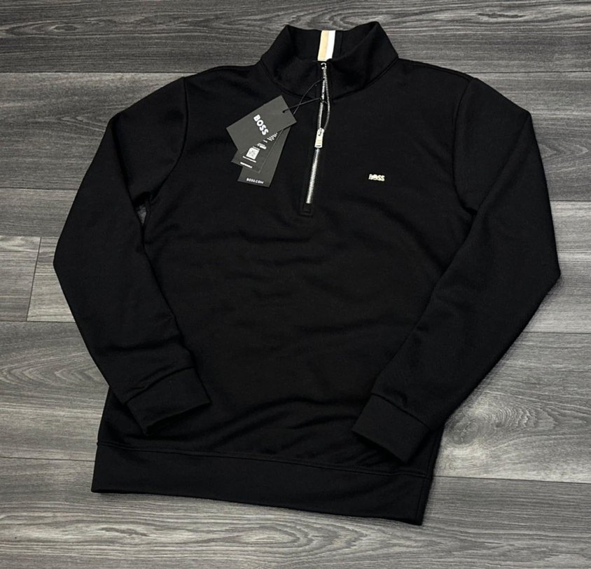 Bu erkek sweatshirtü uzun kollu, bisiklet yaka ve fermuarlı ön kısmıyla dikkat çeker. Siyah renkte, yumuşak ve sıcak kumaştan yapılmıştır, normal kesim ve günlük kullanıma uygundur.