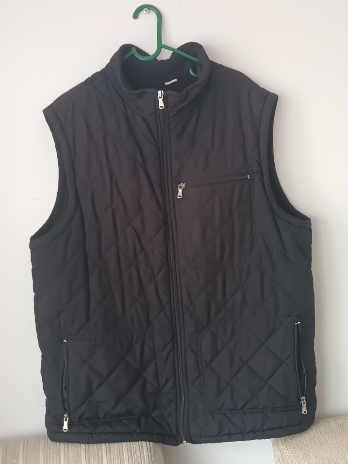 Bu siyah fermuarlı yelek, yüksek yakalı ve fermuarlı ceplidir. Yumuşak, kapitone kumaştan yapılmış, rahat kesim ve günlük kullanım için uygundur. giyilmiş yırtığı söküğü yok içi Polarliı çekimden dolayı rengi solgun çıkmış solma yok boy 71 cm iki kol arası 60 cm