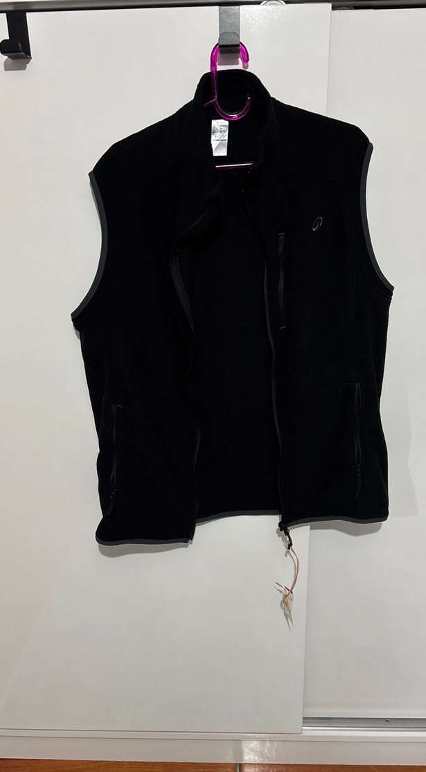 Yumuşak ve sıcak kumaştan yapılmış, fermuarlı siyah yelek. Kolsuz ve yüksek yakalı, günlük kullanım için uygun.