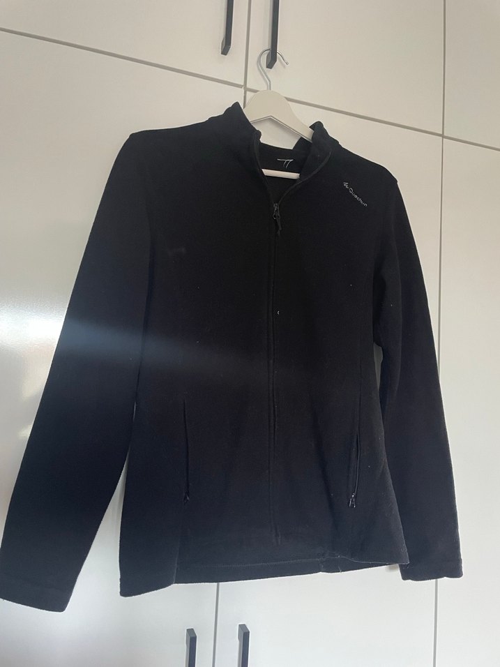 Siyah renkli, fermuarlı ve yüksek yakalı hirka. Uzun kollu, dar kesim ve desen içermeyen tasarımıyla günlük kullanıma uygundur.