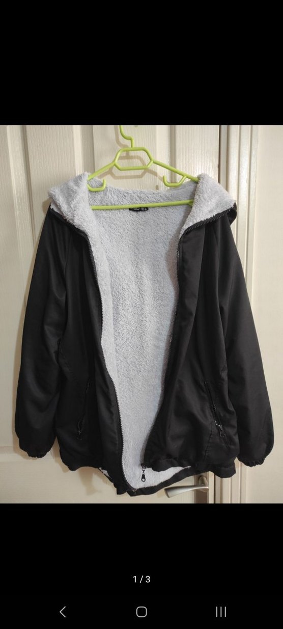 Ambar marka Siyah renkte, yumuşak ve sıcak astarlı, bol kesim uzun kollu kadın ceket. Bisiklet yaka ve ceplere sahiptir, günlük kullanıma uygundur.