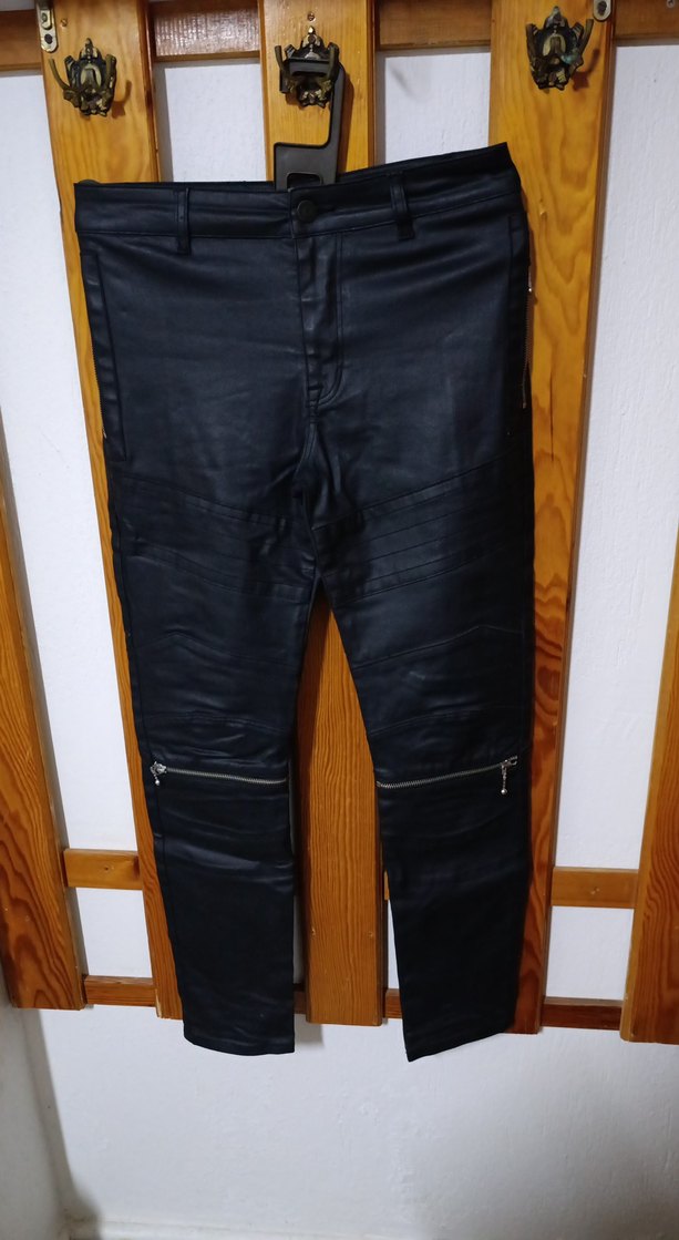 Siyah fermuarlı, fitted kesim @motor deri pantolon, normal boy, motor bisiklet ve sokak stiline uygun.