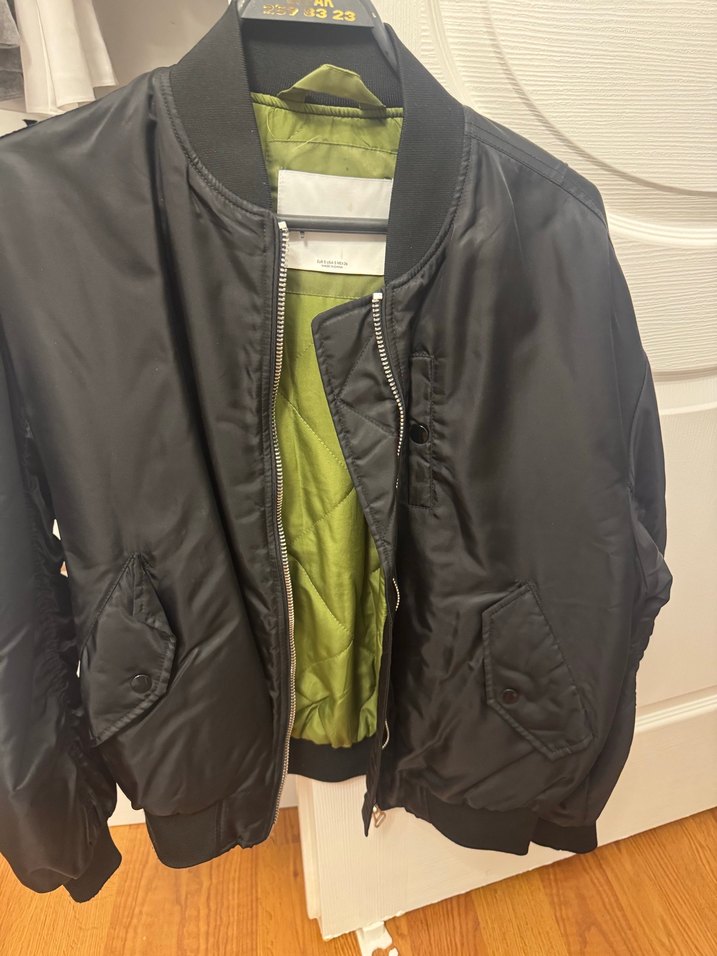 Siyah renkte, fermuarlı, uzun kollu ve normal boyda kadın ceketi. Notched lapel yakaya sahip, sokak stiline uygun sade tasarım. Sentetik kumaştan üretilmiştir.