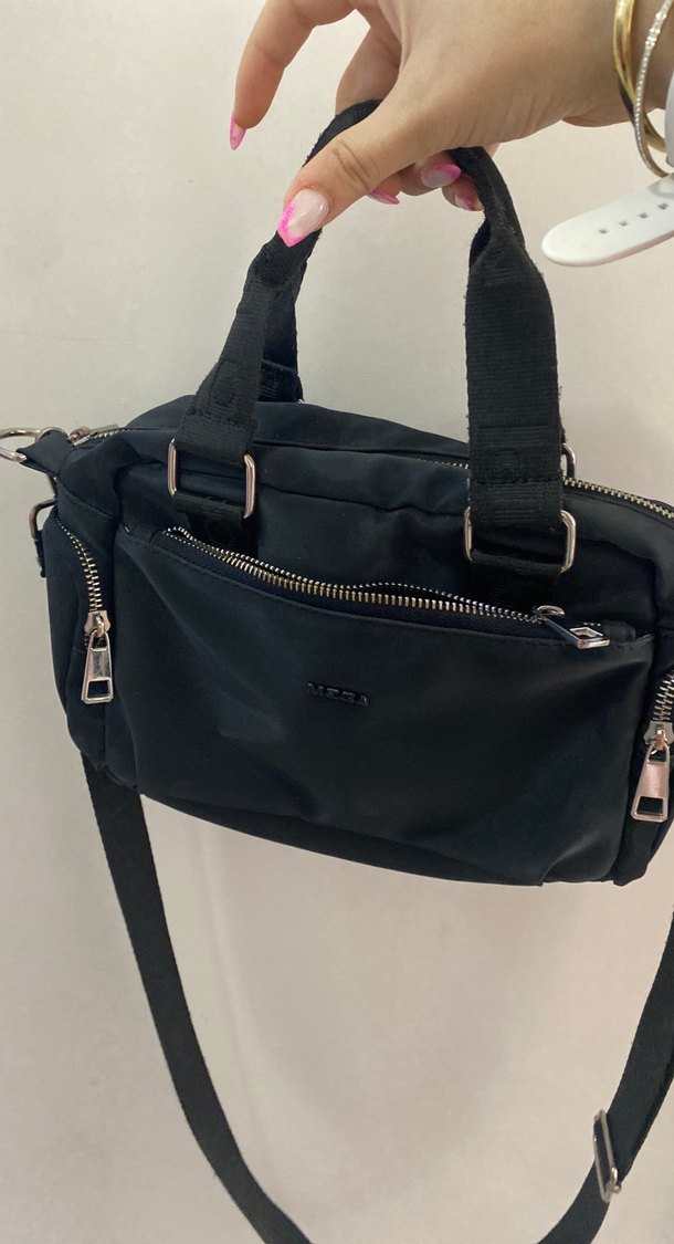 Bu siyah kadın çanta, fermuarlı ceplere sahip ve sentetik kumaştan üretilmiştir. Minimalist tasarımı, trend günlük ve sokak stiline uygundur.