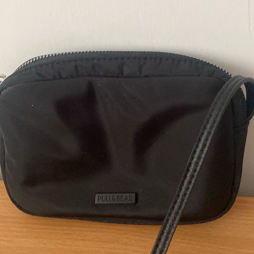 PULL&BEAR markalı, siyah, yumuşak dokulu, fermuarlı kadın çapraz çanta. Minimalist ve sade tasarımıyla günlük kullanım ve sokak stili için uygundur.