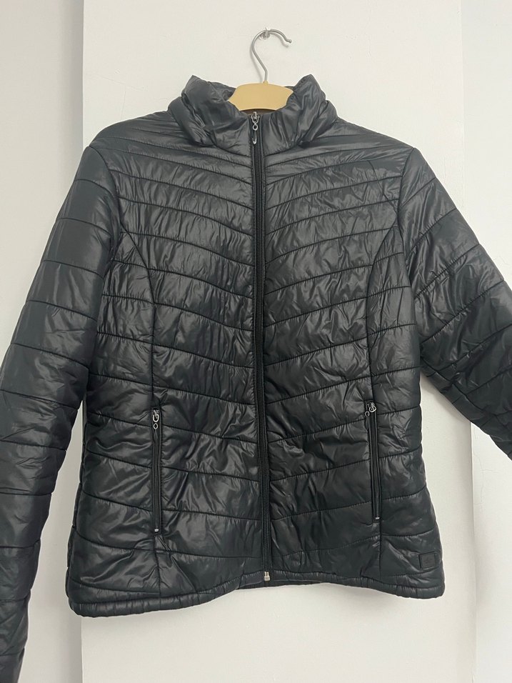 Siyah, fermuarlı ve dar kesim kadın ceket. Sentetik kumaştan, uzun kollu ve çıtçıtlı yakalıdır. Günlük kullanım için uygundur.
