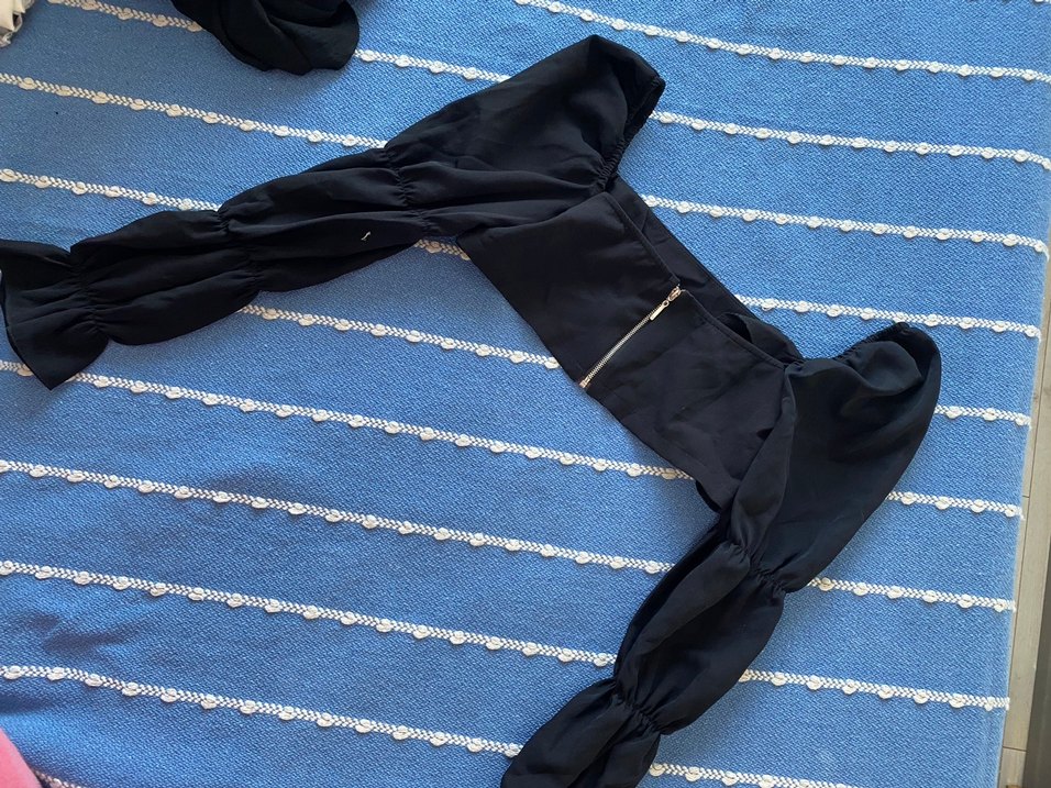 Dekoltesi var, kolları volanlı ve ispanyol kol.