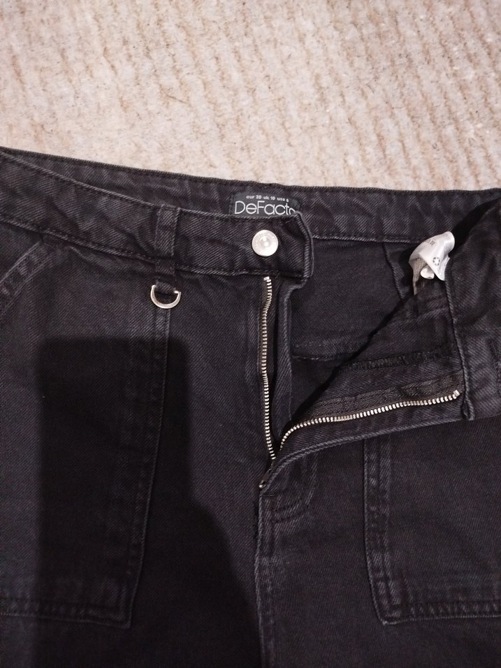 Siyah denimden yapılmış, fermuarlı, bol kesim ve normal boy pantolon. Grunge punk tarzında, rahat sokak giyimine uygun. Günlük kullanım için ideal. 1000 TL'ye aldık ama hiç kullanmadı olmadıgı için satıyoruz