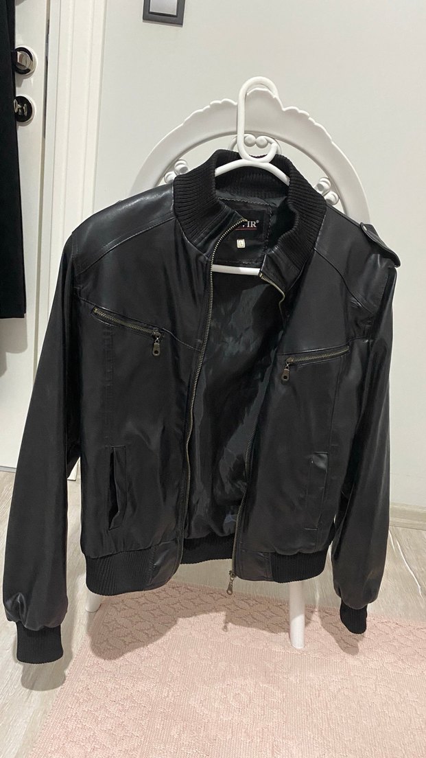Fermuarlı cepli, siyah, deri, uzun kollu, normal boy, 1-2 kez belki giyilmiştir çok az kullanıldı iyi durumda, vintage duruşu çok güzel, pazarlık yapılabilir