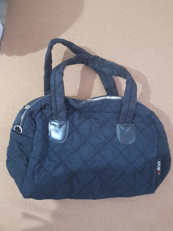 Siyah renkte, fermuarlı ve yumuşak dokulu kumaştan yapılmış kadın el çantası. Sade ve desen içermeyen tasarımıyla rahat sokak stili için uygundur.