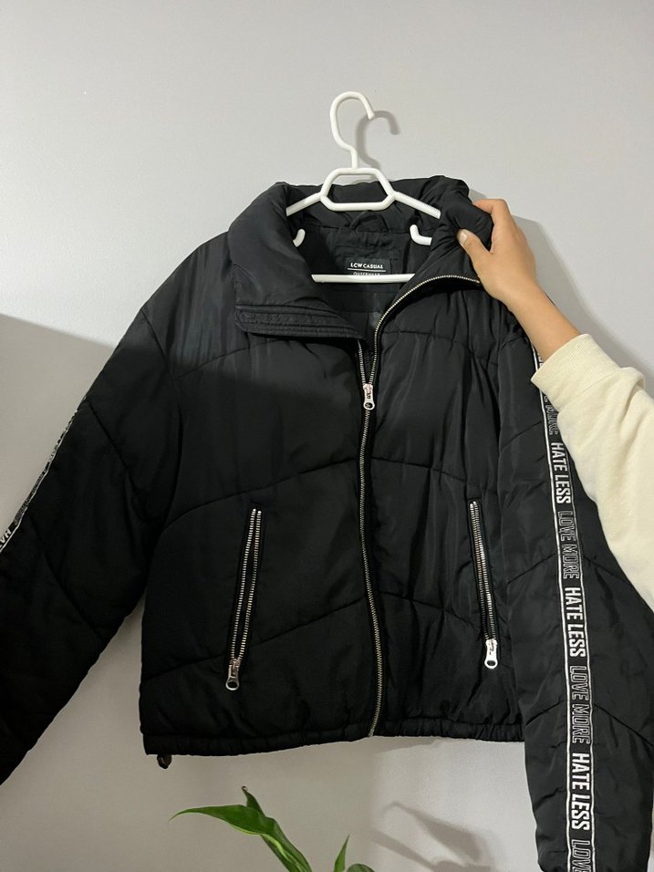Siyah, parlak sentetik kumaştan yapılmış, fermuarlı cepleri ve yüksek yakası olan, midi uzunlukta ve fitted kesim günlük kadın ceketi. Strappy kolludur, sokak stiline uygun. hafif bı lekesi var ona göre fiyatı düşük tutuyorum
