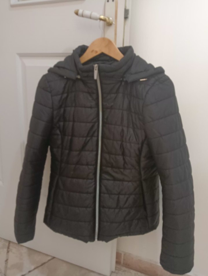 Siyah, fermuarlı ve uzun kollu kadın mont. Orta boy ve vücuda oturan kesimiyle sokak stiline uygun, rahat bir tasarıma sahip. Kapişonu çıkartılabiliyor .
