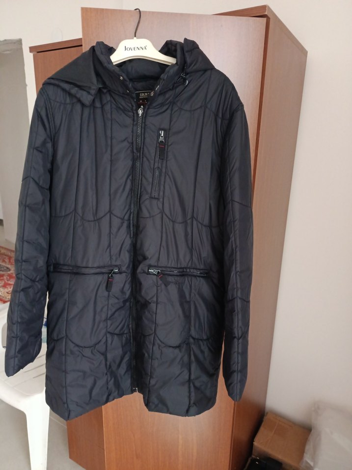 Siyah, fermuarlı, uzun kollu ve yakalı bu fitted kadın mont , midi boyda ve rahat sokak stili için uygun yumuşak ve sıcak kumaştan yapılmıştır.