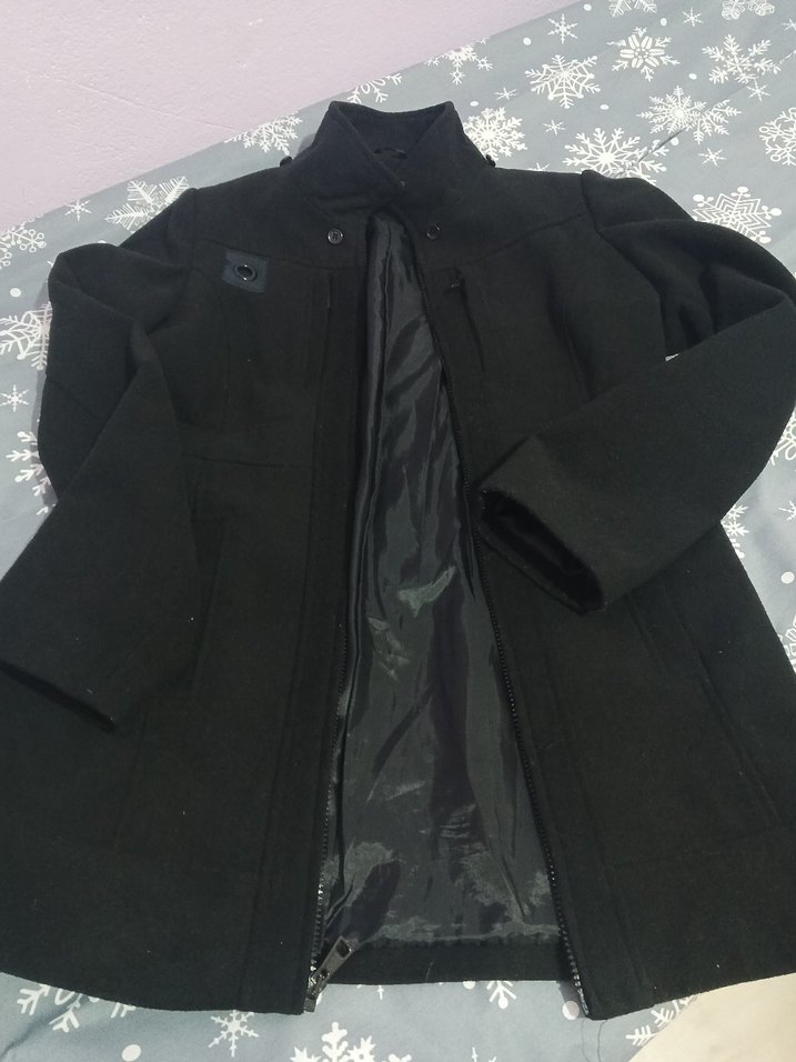 Önden fermuarlı yüksek yakalı,vatkalı içi düzgün astarlı siyah kadın kaban.